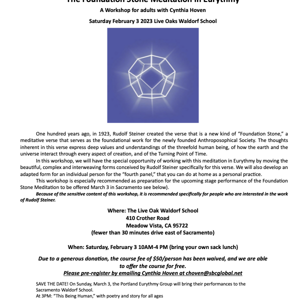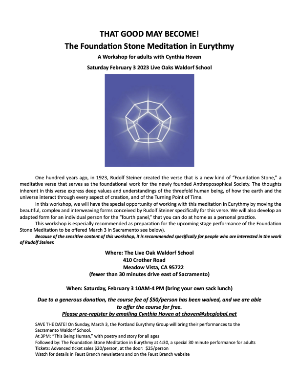 | Kolisko Institute Webinar: February 17, 1 – 2 PM CT Free Are we, as individual anthroposophists, part of the anthroposophical movement?When he laid the Foundation Stone at the Christmas Conference (1923/24) R. Steiner stated that with that Mystery Act the Anthroposophical Movement and the Anthroposophical Society became one. What did he mean by these intrinsically complicated concepts? These questions may seem theoretical but, in actuality they address the very identity of each one of us. How did he expect us to conduct our lives in view of these statements? 100 years later can we develop fresh new insights based on R. Steiner’s work – and perhaps aided by the inspirations of the Michael students that have passed the threshold. The webinar will show practical (and practicable) steps forward. Please join us for the free live presentation-later online availability for a fee. Your presence will be essential! |