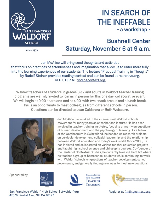These methods are a well-developed process of concentration, observation, and imagination, based on Rudolf Steiner’s How to Know Higher Worlds. They create the preconditions for having direct spiritual experiences. There are no prerequisites for this course, but all first-time participants are required to participate in full.