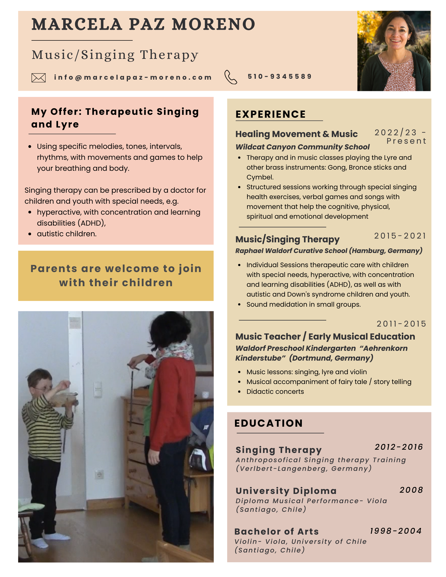 Marcela Paz Moreno, Singing and Music Sound Therapy