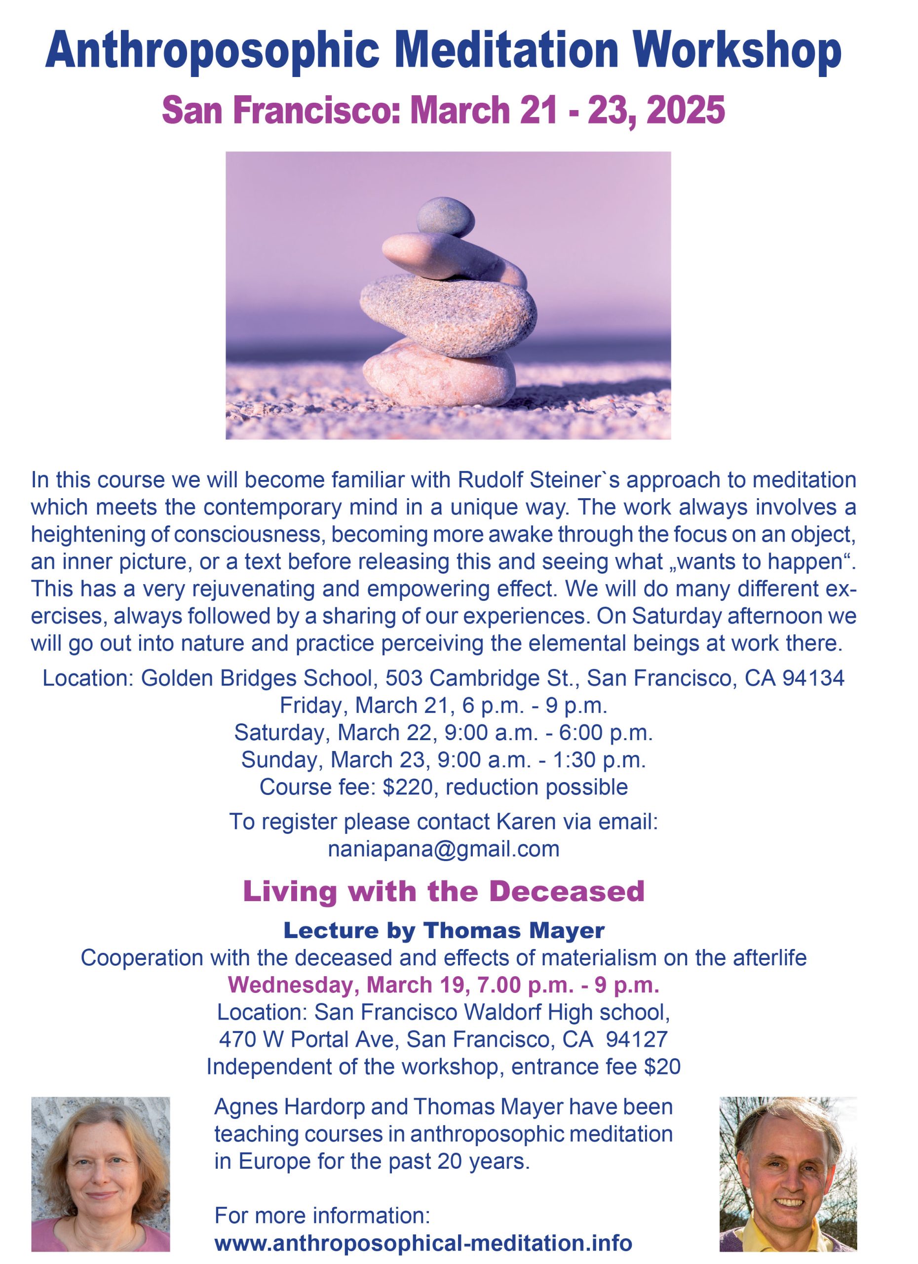 Sunday March 24, 3 pm @ 470 West Portal Ave. San Francisco Waldorf High School Eurythmy Room
